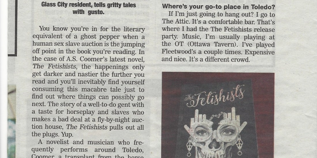 Need a book to read this weekend? You should pick up a copy of The Fetishists. Jeff Klima of Toledo’s The City Paper did just that a few weekends back and was kind enough to write a review.