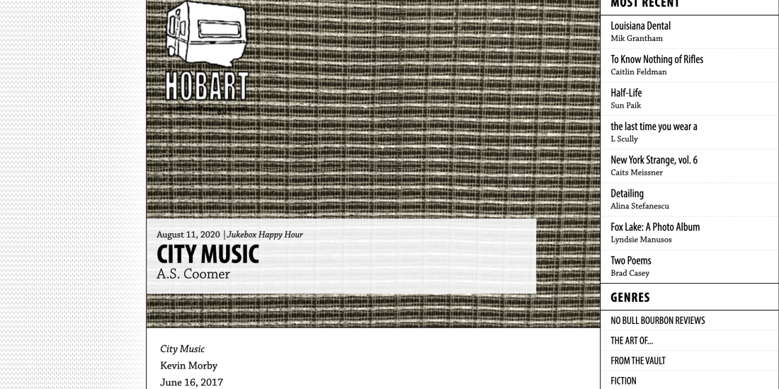 I’ve got a new piece up over at Hobart about Kevin Morby’s City Music record, band practice, and the coronavirus blues for their mini-review and drink pairing series called Jukebox Happy Hour.